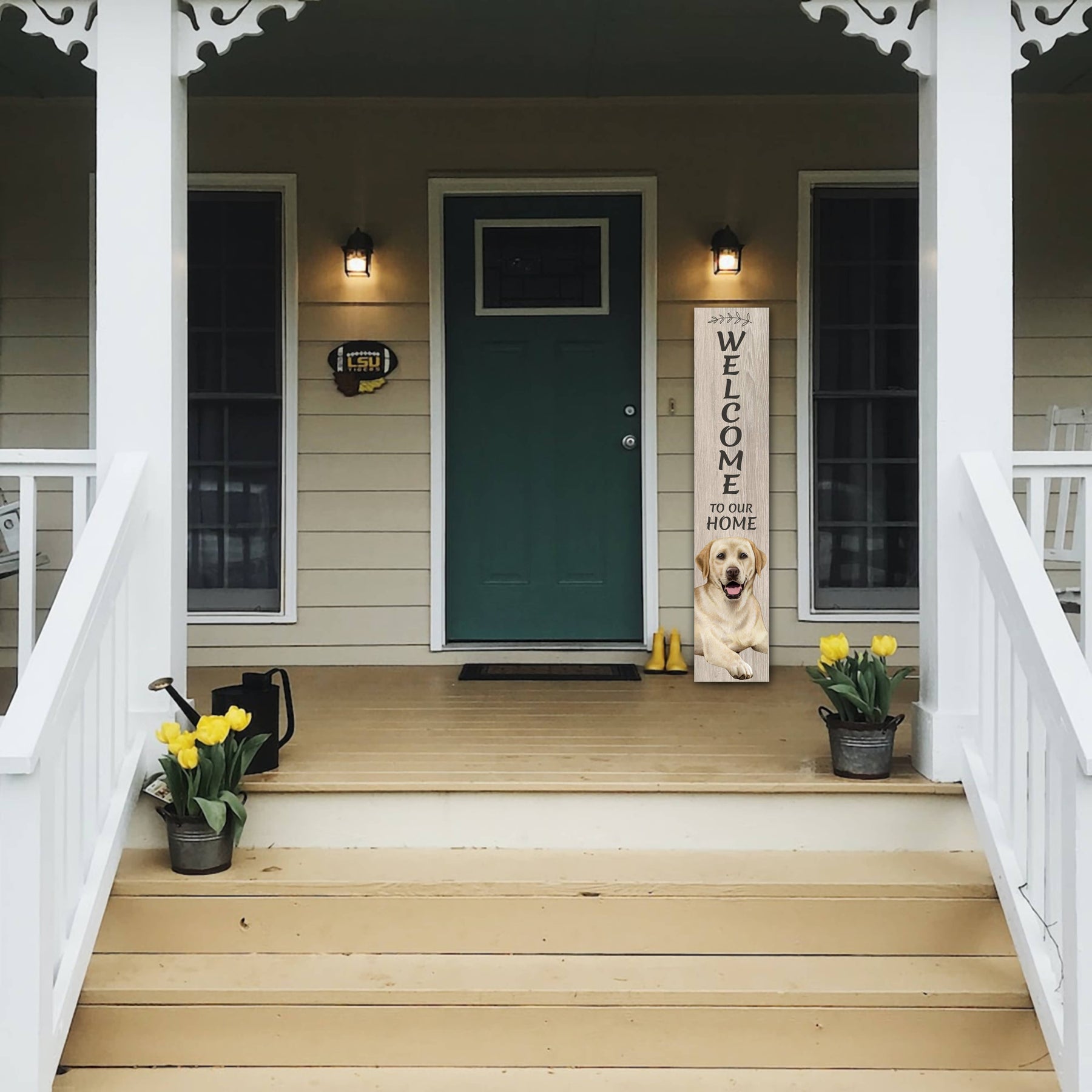 This large outdoor sign is great for gracing an entryway, hanging in a room, or standing by a front door! Suitable for porches, foyers, garages, and patios as well. The signs are made from a special weatherproof board that can be left outside all year round. Moreover, they are insect-proof! The signs have a deeply textured wood-grain surface that adds character. A rope is attached to the back of each sign so that it can be hung.