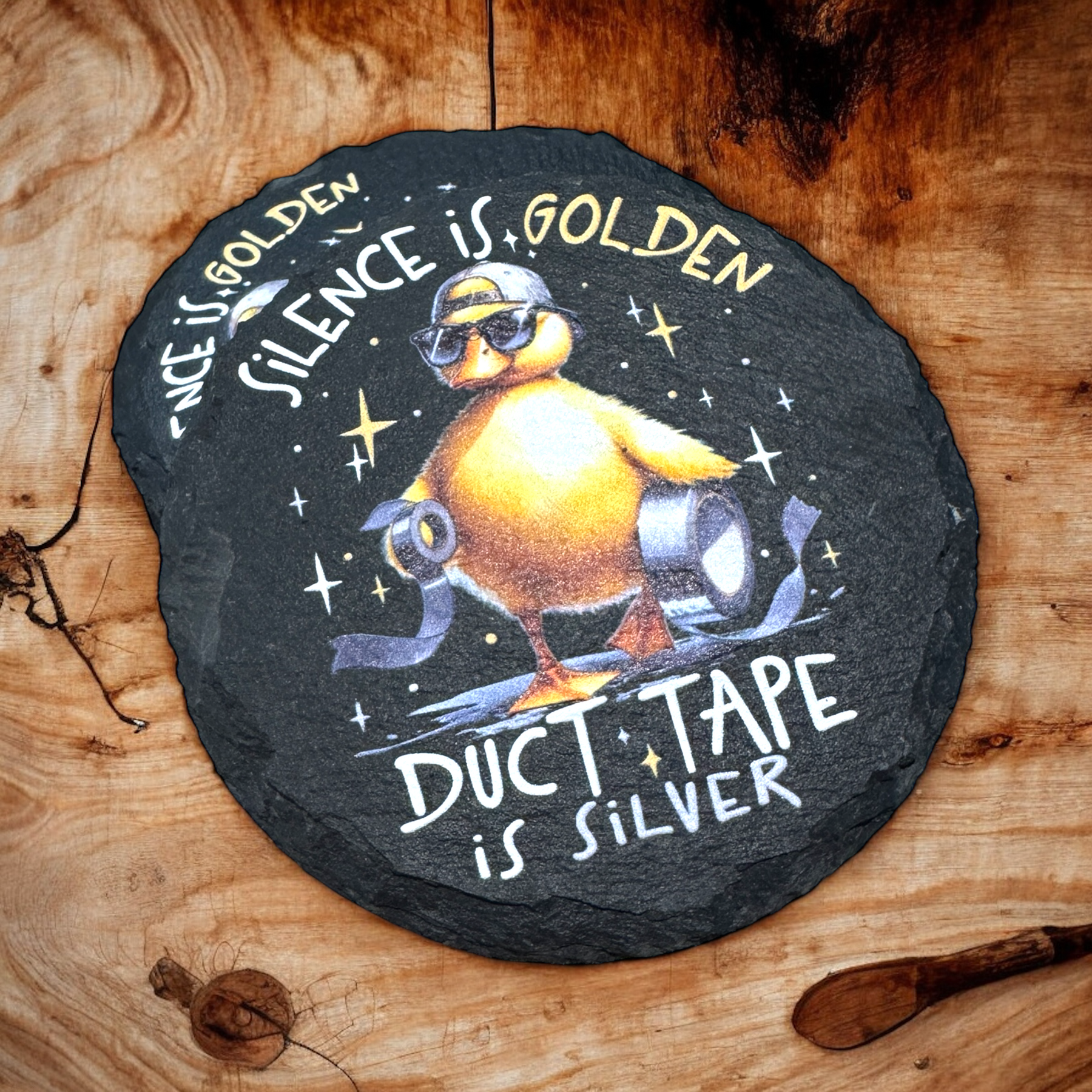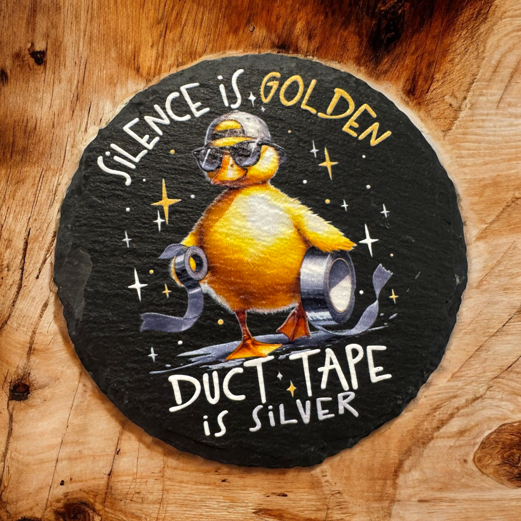 Bring a smile to any space with this playful slate coaster featuring the witty phrase, "Silence is Golden, Duct Tape is Silver." UV printed for vibrant, lasting detail, itās a fun gift that protects surfaces while sparking laughterāperfect for any ājust becauseā moment.