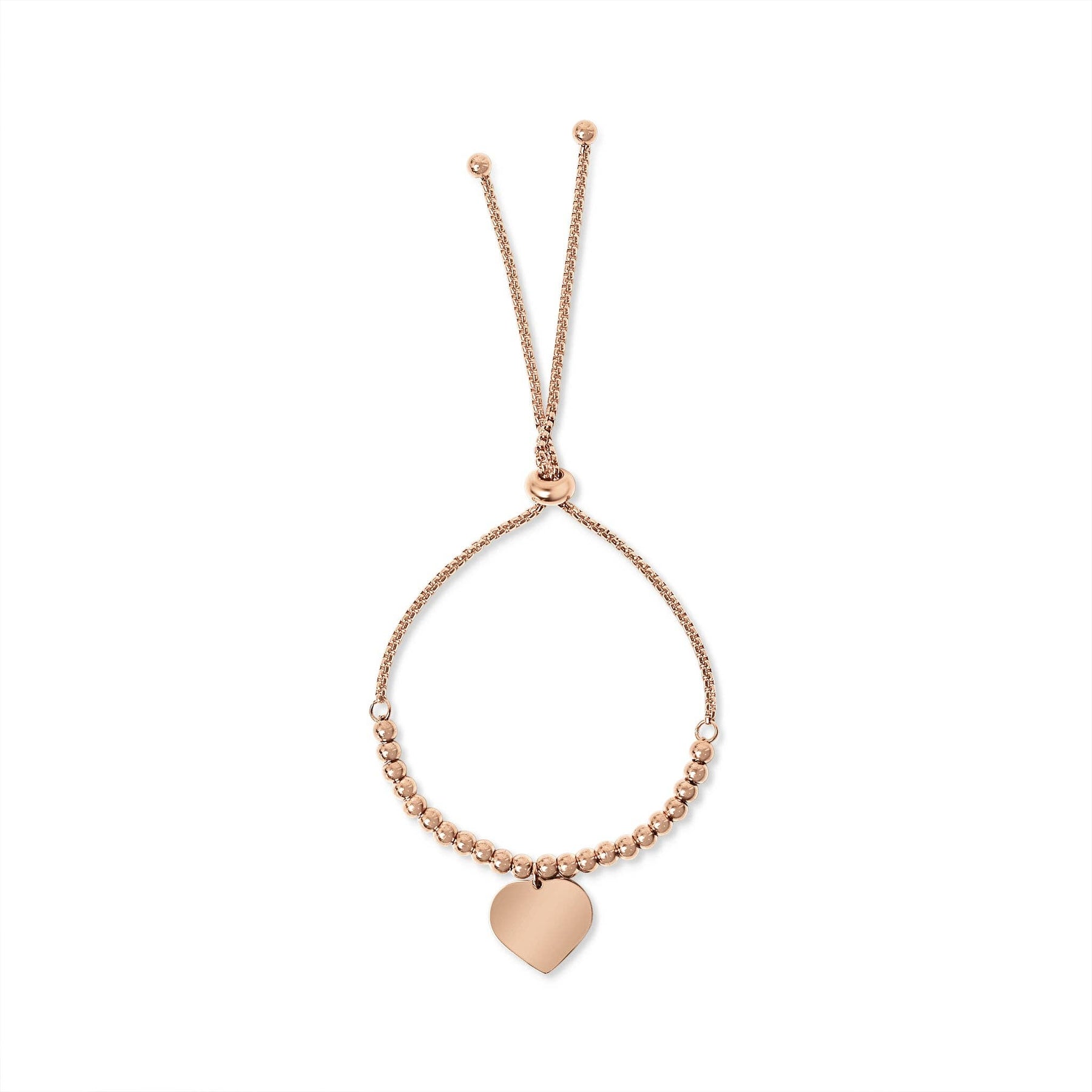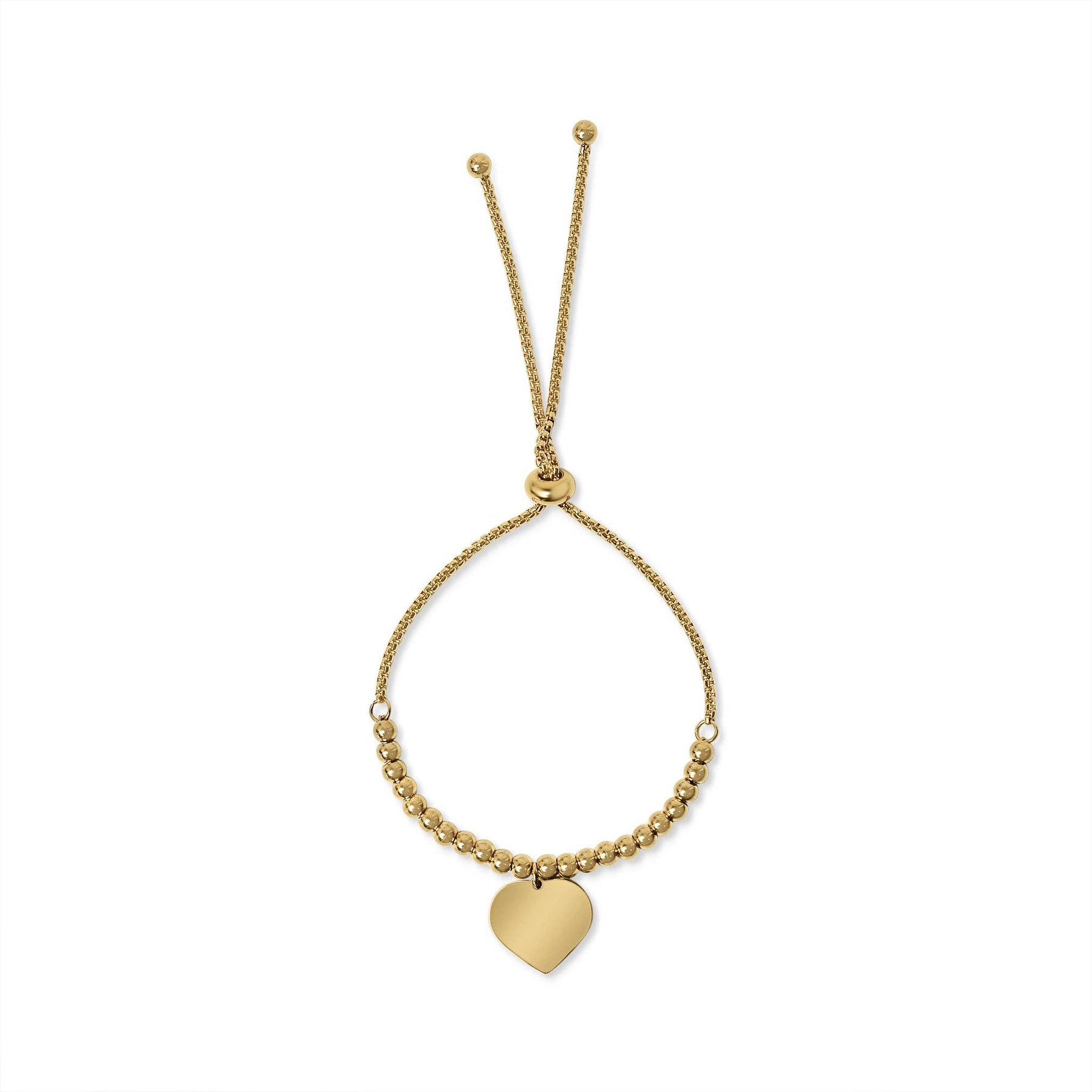 This Stainless Steel Adjustable Engravable Heart Beaded Bracelet features a heart pendant charm centerpiece, perfect for personalizing with laser engraving and stylish enough for any holiday occasion.