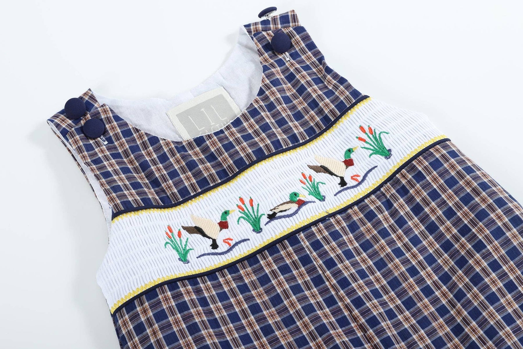 Just ducky! These Lil Cactus blue flannel overalls are made in 100% soft cotton. They feature beautiful duck embroidery, smocking, and snap enclosures for easy changing. The perfect outfit for your little guy and all of your fun adventures. From feeding ducks in the park to playdates with friends; no matter the occasion he will be looking picture-perfect!