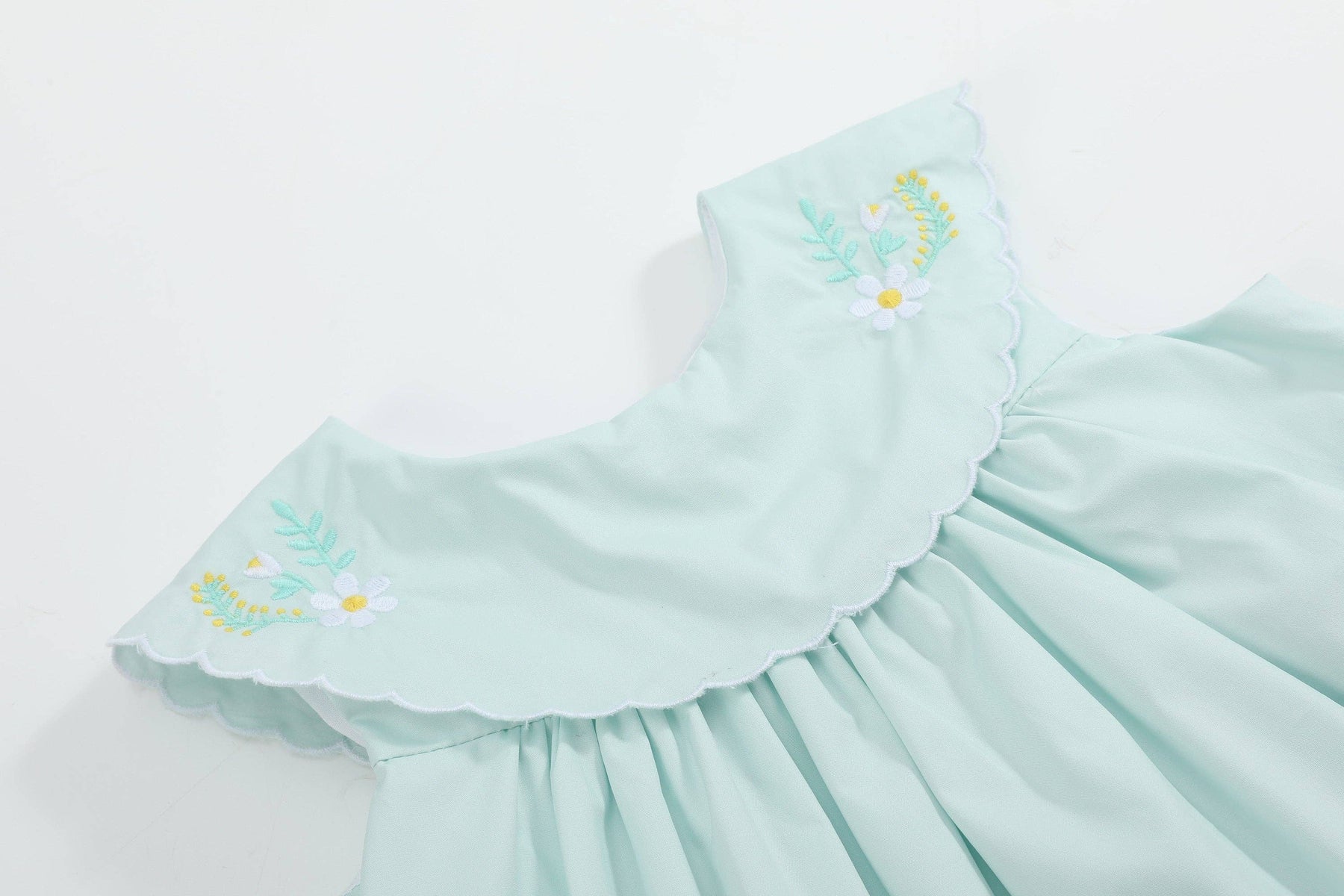 This darling Misty Blue Fuzzy Chickies Dress is full of springtime charm! It features a pretty scalloped collar adorned with delicate flower embroidery, adding an extra touch of sweetness. Along the bottom, are adorable chickies, which brings the perfect amount of playful detail. Ideal for Easter, garden parties, or sunny day outings—this dress is as precious as it is picture-perfect!