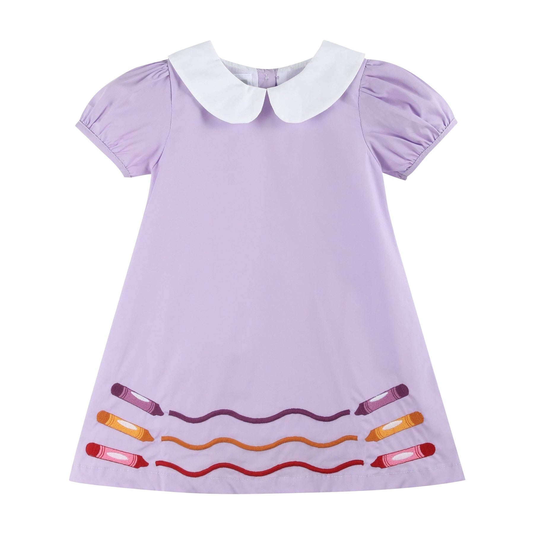 Elevate Back to School style with our Purple Gingham Crayon Collared Dress! The classic white collar adds a touch of sophistication, while the embroidered crayons on the dress bottoms bring playful charm. Let your sweet girl make a colorful statement in this adorable ensemble.