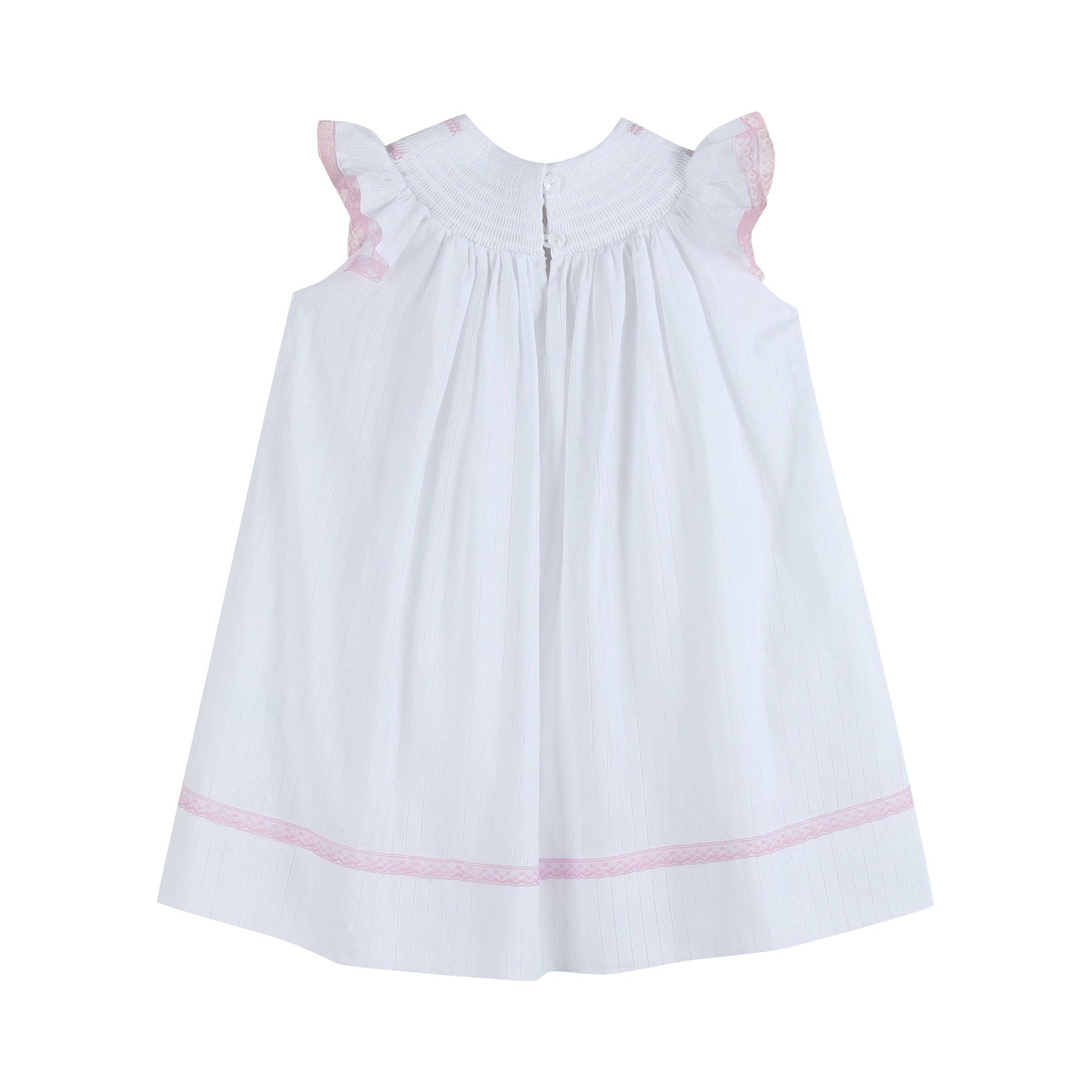Absolutely Adorable! This charming dress is timelessly pretty. Made in a lightweight cotton fabric that will keep her cool and comfortable as she plays. The classic styling is updated with pops of pink and beautifully embroidered crosses. Perfect for Sunday service with grandma or for a fun day out with Grandma.