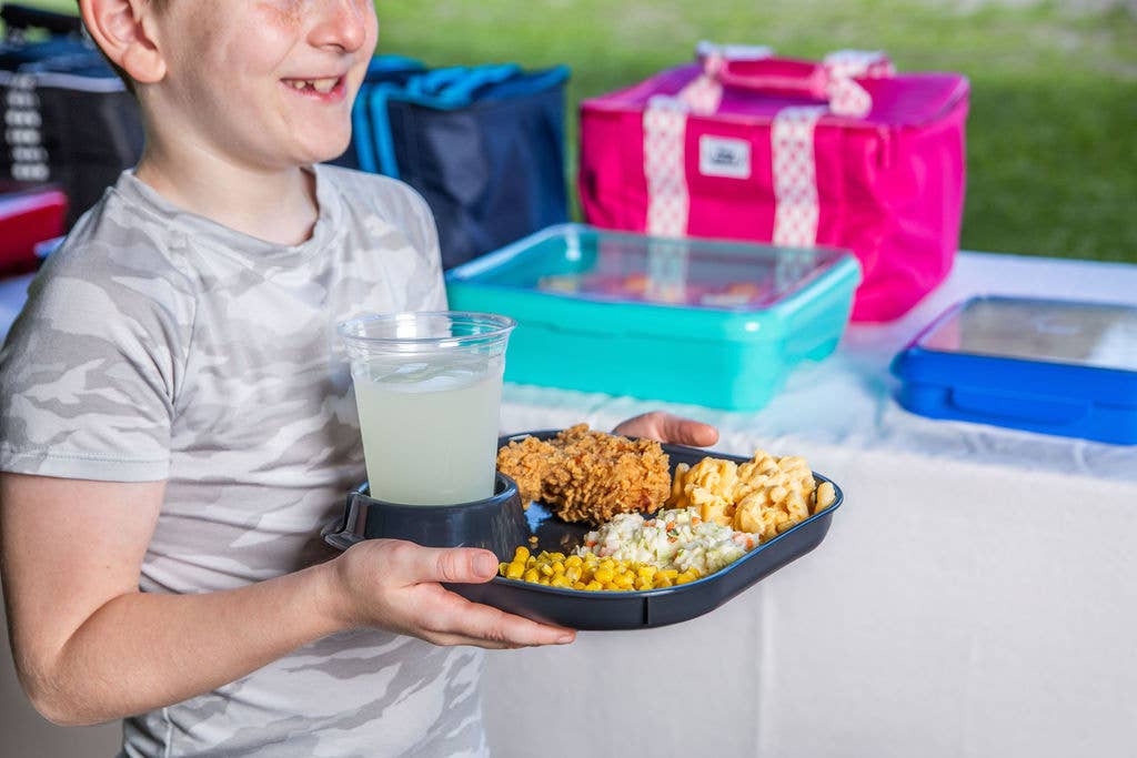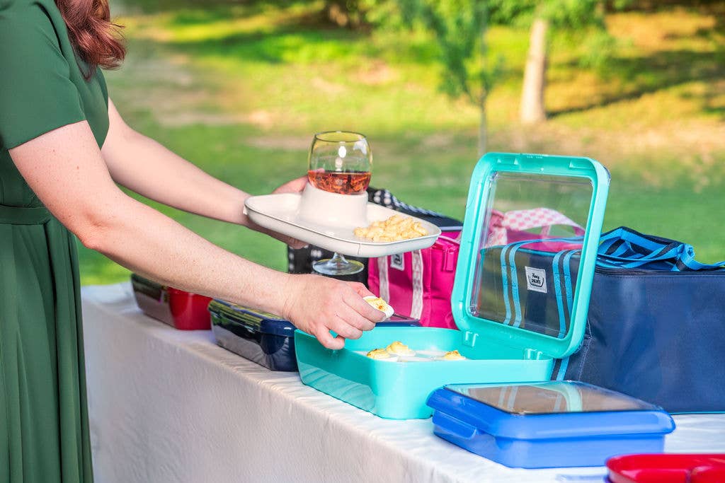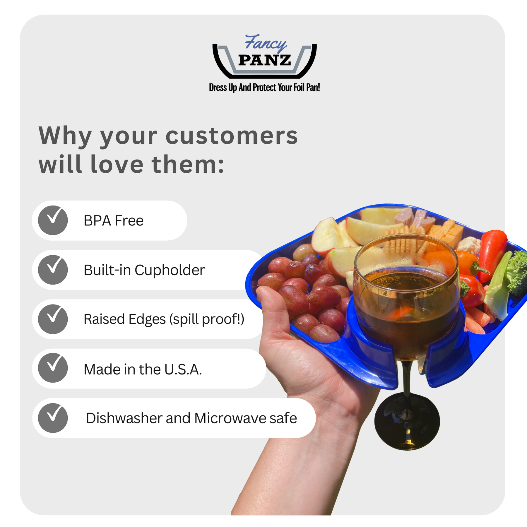 WHAT ARE FANCY PLATES®: These 10" reusable plates feature a built-in cupholder that fits stemware, cans, bottles, and more. The raised rims help prevent spills, making them ideal for eating on-the-go or serving appetizers and condiments. Perfect for fall & winter events such as office parties, school sports, Friendsgiving and year end celebrations like NYE!
