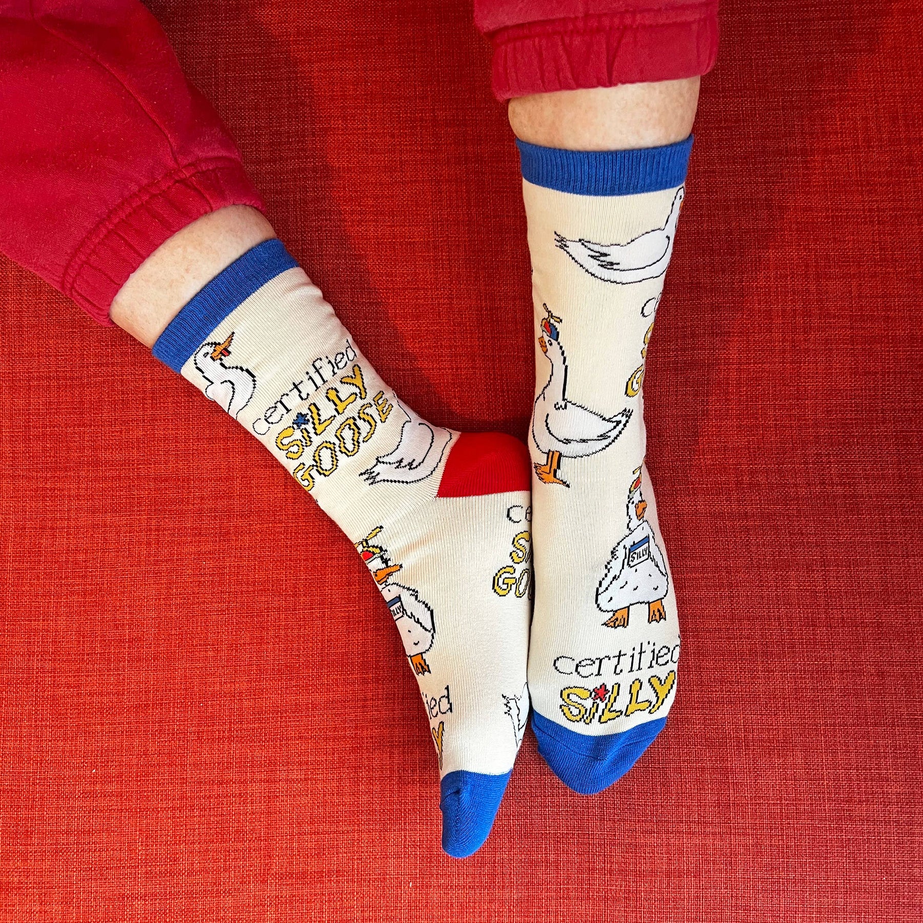 Certified silly goose. US Size: Women's shoe size 5 to 10, One size fits most women. Made from premium cotton, these novelty socks are super soft and lightweight, allowing your feet to breathe and stay cool during strenuous activity. Not too tight and hold up well, fine toe seam reduces rubbing and gives extra comfort. See Details tab for more info.