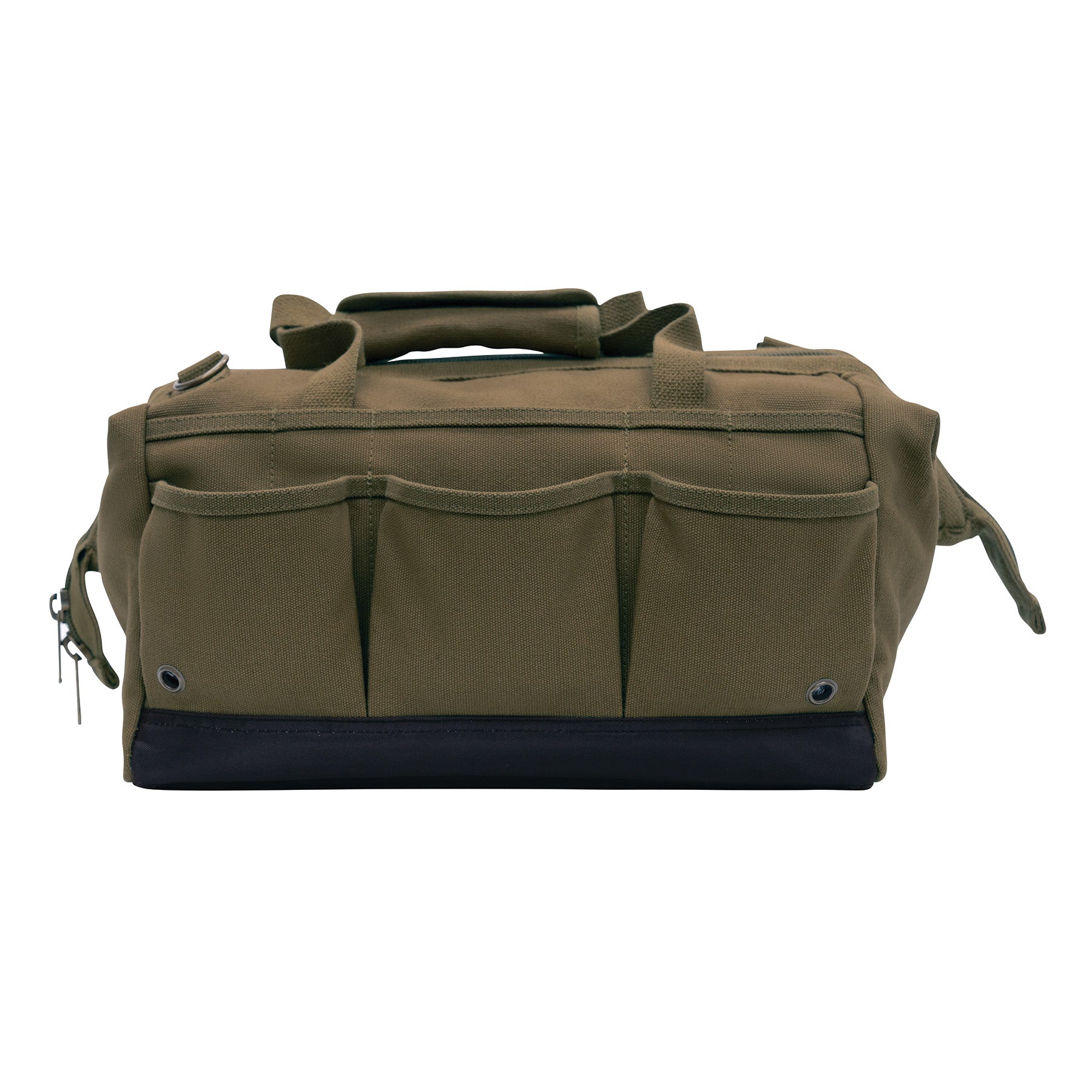 - UTILITY AT THE FOREFRONT: The Contractor Bag Comes Equipped With Top Grab Handles With A Built-In Handle Wrap And An Adjustable Shoulder Strap For Comfortable And Easy Carry. The Shoulder Strap Is Also Detachable And Can Be Conveniently Stored Away When Not In Use. The Hard Insert Bottom Provides Structure And Stability While Also Supporting The Weight Of Your Tools. Additionally, The Molded Plastic Feet Ensures That Canvas Tool Bag Stays In Place.