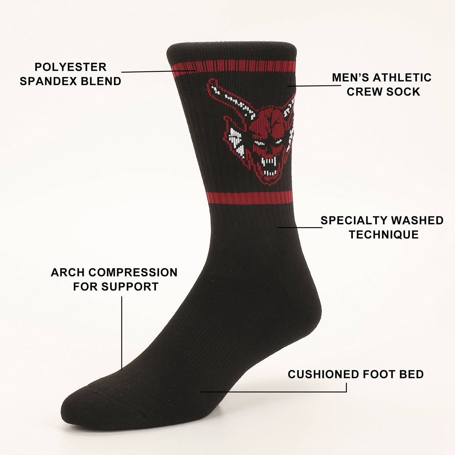 Step into style and comfort with these Stranger Things socks. Featuring cushioned foot bed, arch compression for support, specialty washed technique, they add standout flair to your everyday wear.