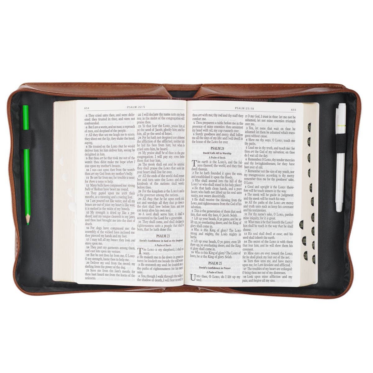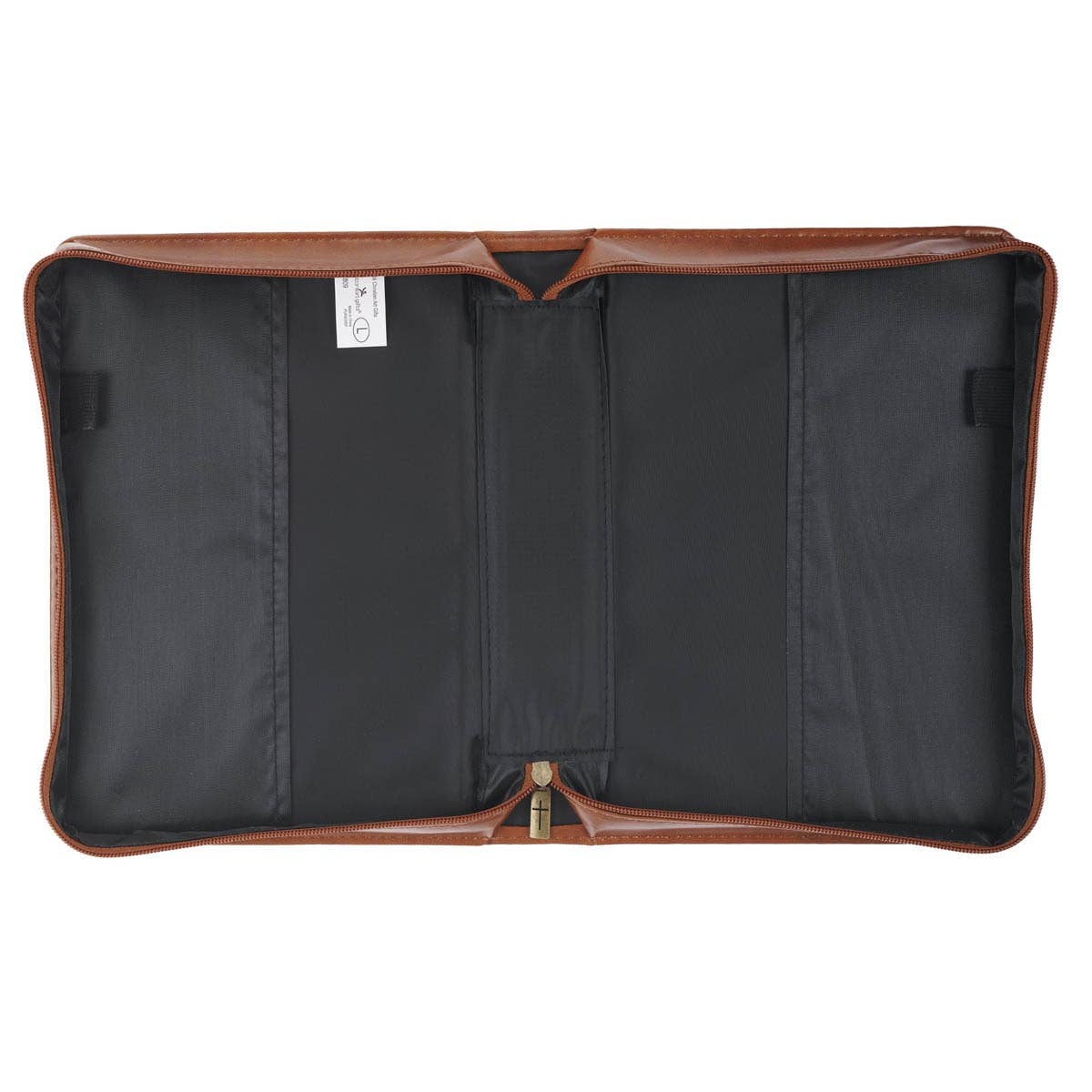 The Trust in the Lord Honey-brown Faux Leather Classic Bible Cover combines top-notch protection with an elegant design, making it a thoughtful gift for a son on his graduation.  Heat-debossed typographical design, Honey-brown faux leather, Heat-debossed text, Trust in the Lord with all your heart, Proverbs 3:5, Honey-brown topstitching, Classic Bible cover, Lay-flat carry handle, Antique gold handle hardware, Antique gold cross-engraved zipper pull, Two interior pen loops, Slip pocket on back panel, Available in medium, large and extra-large, Refer to Image Carousel for Bible Cover Sizing Chart